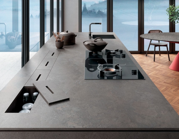 All of our stone surfaces are cut to size and require a custom quotation.