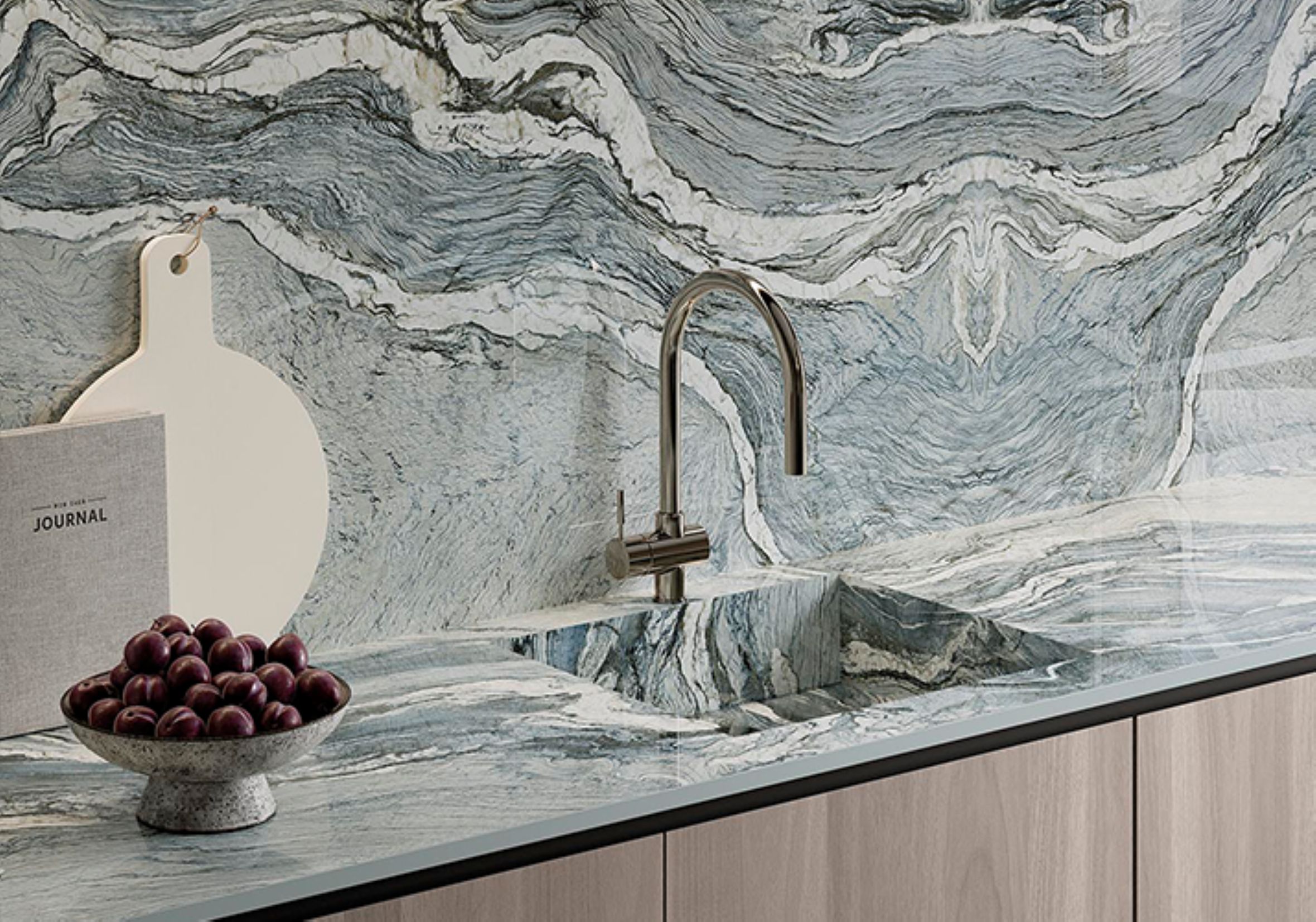 All of our stone surfaces are cut to size and require a custom quotation.